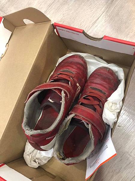 二哥說:媽媽我真的捨不得丟掉它(我兒子真的很念舊😝)媽媽說:不行,底都磨平了!危險!二哥才捨不得的說:好吧!我一定會很愛惜我的新鞋子!